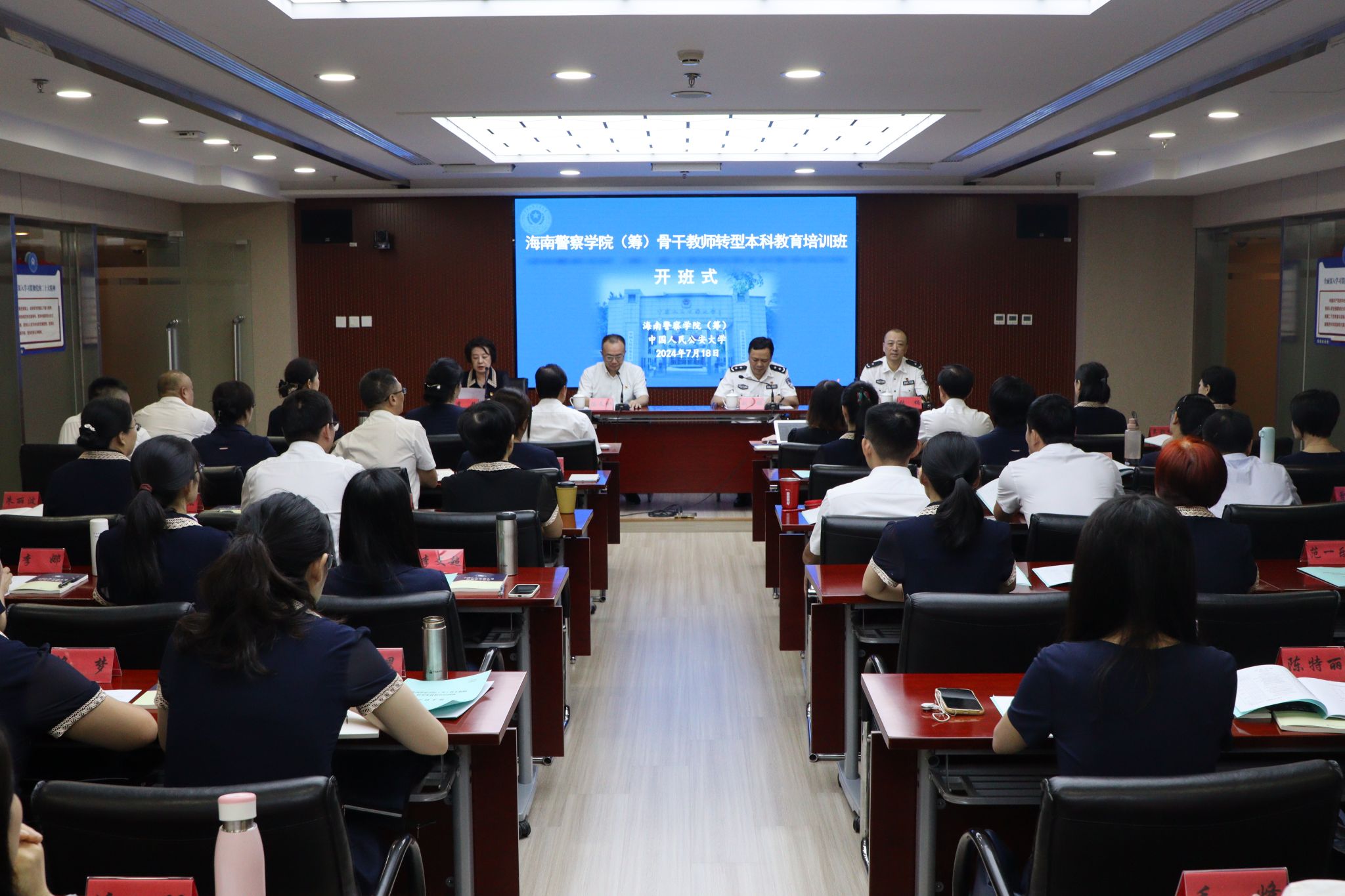 海南警察学院(筹)骨干教师转型本科教育培训班开班式7月18日在开云官网举行,校党委副书记刘宇鹏出席开班式并致辞,海南政法职业学院党委副书记、院长陈文彬作培训动员讲话。本期培训班是新筹建的海南警察学院主动适应本科教育转型新形势新任务、大力推进教师队伍建设的具体行动。培训课程紧紧围绕学习贯彻习近平总书记关于新时代公安工作、教育工作的重要论述这一主题主线,聚焦公安高等教育高质量发展重点难点问题,科学设置了公...