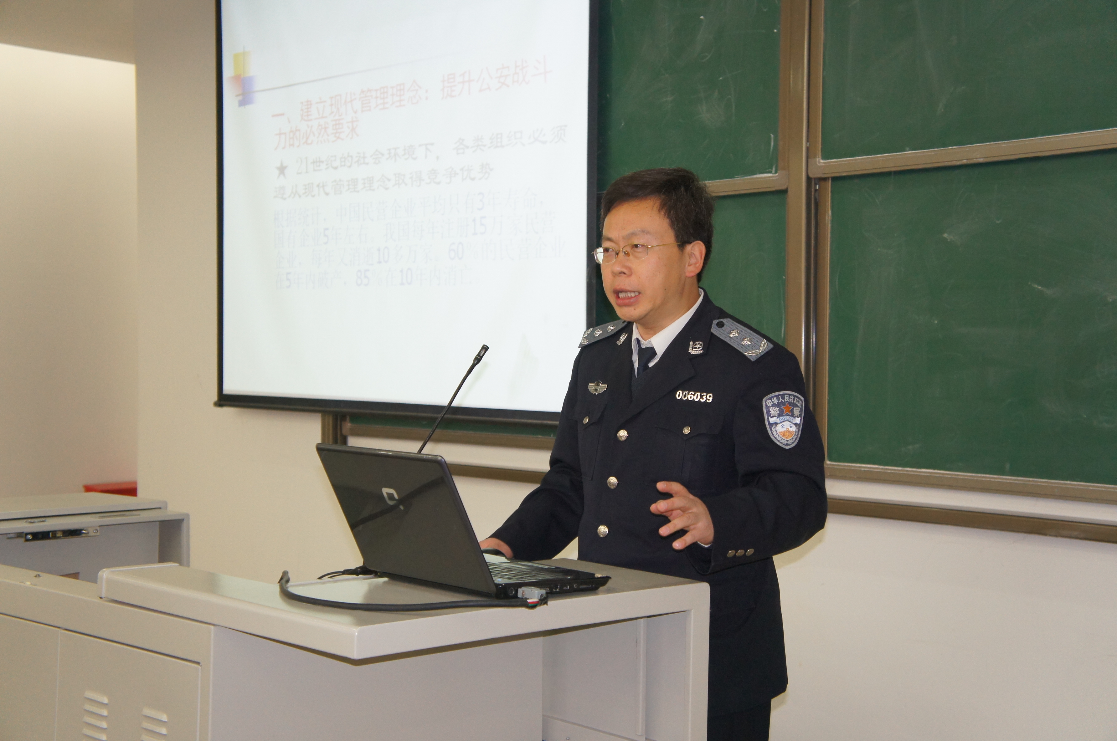 2011年11月25日下午,开云官网管理系主任张光教授为第88期警督晋升警监警衔培训班讲授了《现代管理理念与公安管理创新》专修课程。