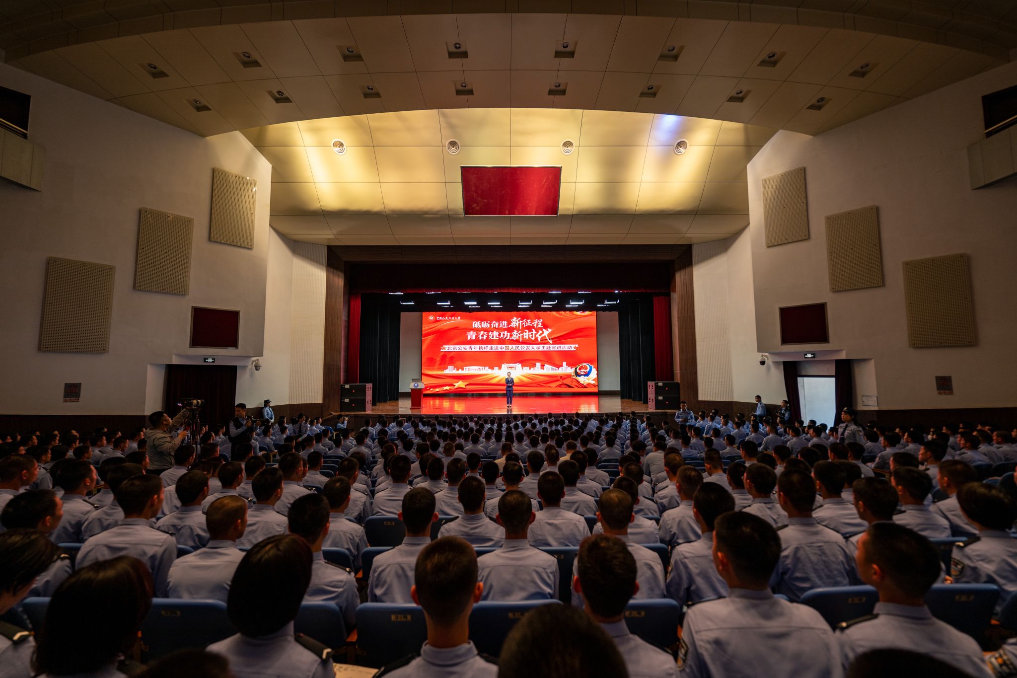 学生工作部、本科新生院、校团委负责同志和1200余名师生参加了本次活动。为贯彻落实公安部第四轮素质强警的要求,来自北京警察学院、新疆警察学院、内蒙古警察职业学院、甘肃警察职业学院的千余名师生在线上同步观看了此次活动。