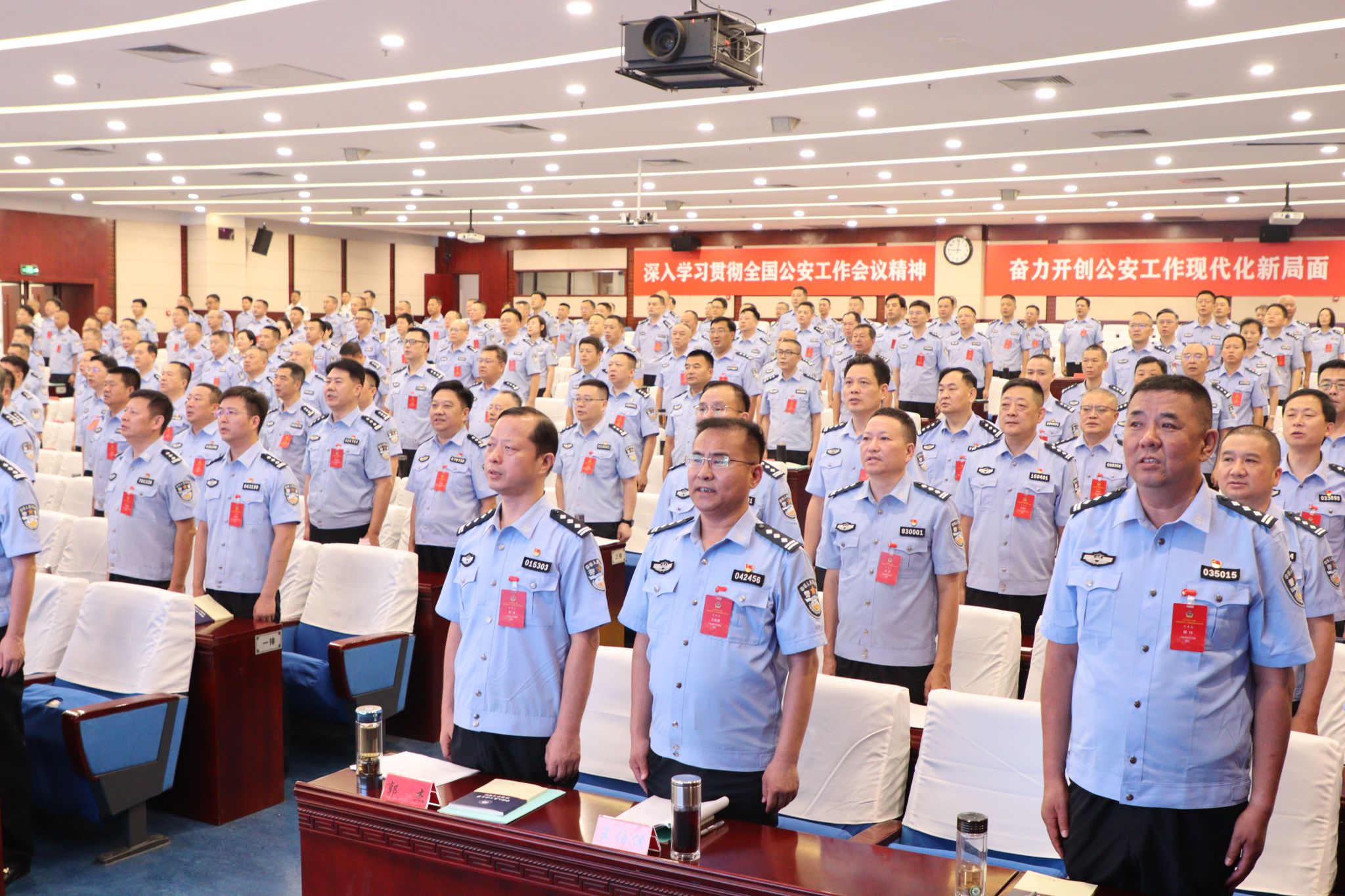 本期培训班为期12天,实行严格的警务化管理,215名符合公安部2024年第二季度晋升三级警监警衔条件的公安机关领导干部在校参训。