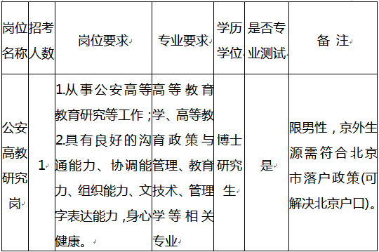 为进一步加强公安大学教务处队伍建设,更好地服从、服务于公安工作和公安队伍建设,进一步提高高教管理水平,教务处2017年招聘公安高教研究岗1名。