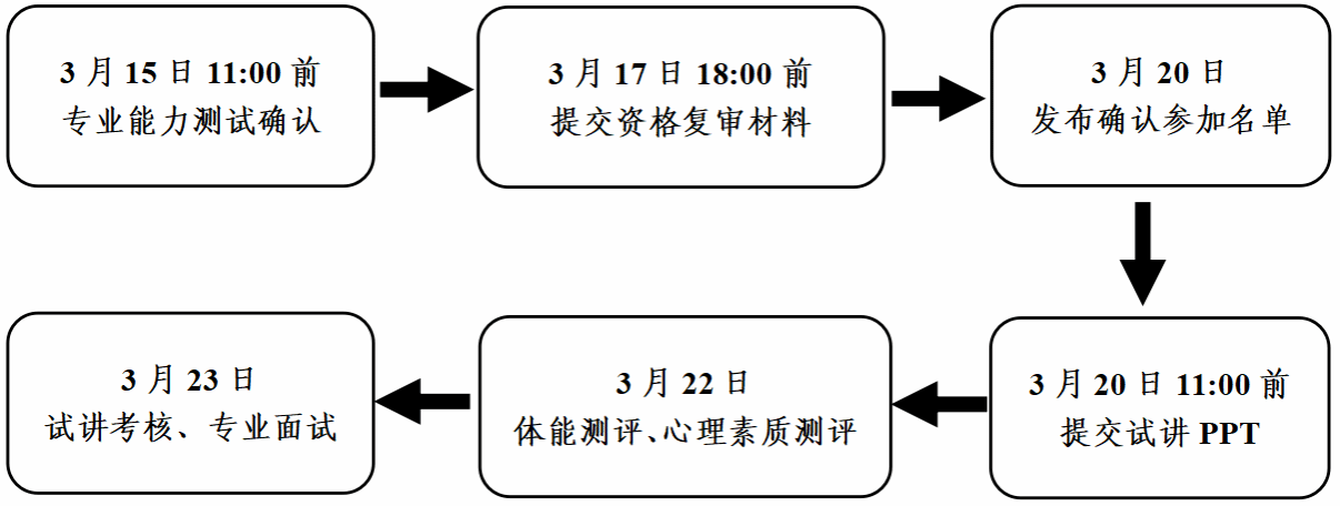 (一)考生个人食宿、交通费用自理,请合理安排行程,确保按照规定的时间、地点参加体能测评、心理素质测评、专业能力测试等,保证安全。