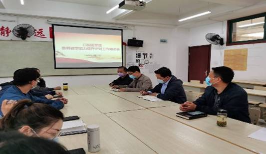 先后有三位老师作了汇报交流。专业带头人谢宏新对近三年全国教师教学能力大赛的相关文件进行了解读;口腔临床教研室主任肖严对往届教学能力大赛的得失进行了总结与反思;副院长许杰对教学计划的设计、教学方法的运用、教学策略的指定等五个方面进行了交流。
