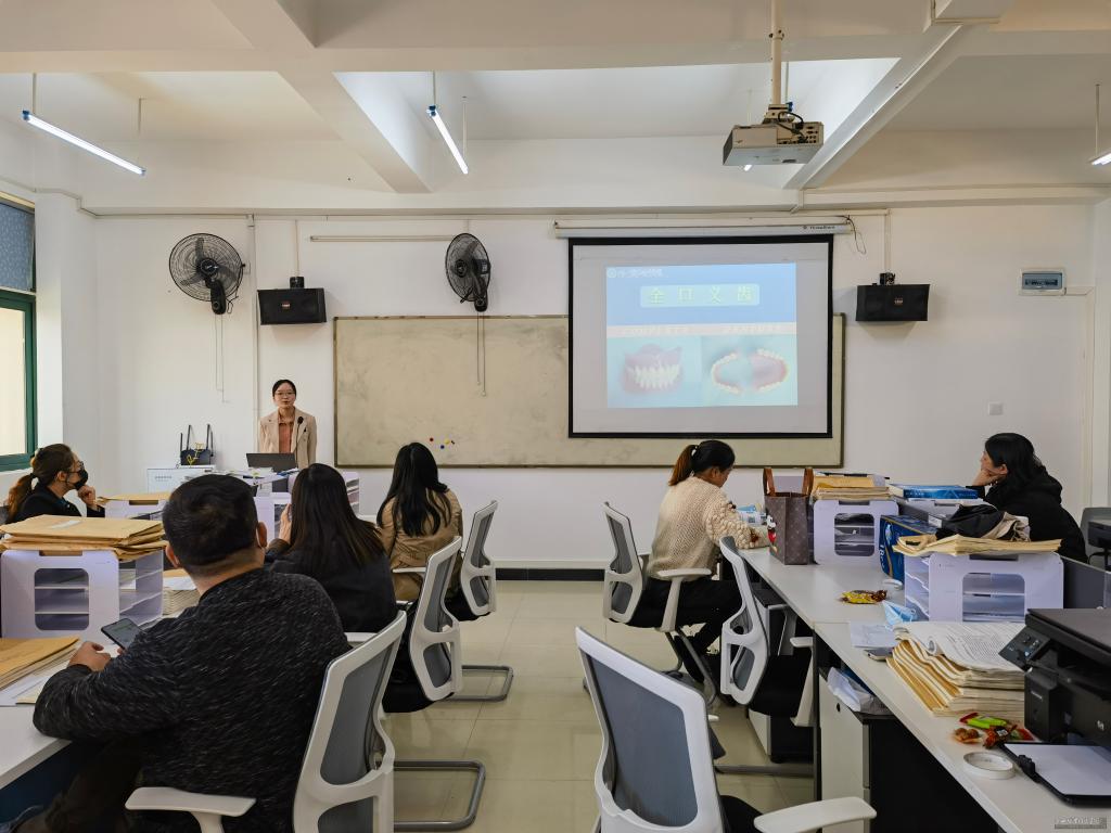 为搭建老师间相互交流、相互借鉴、共同提高的平台,促进青年教师发展与成长,2023年4月17日,口腔临床教研室主任、省赛一等奖获得者朱星老师为全体教师展示了一堂《口腔颌面外科学》示范课。朱星老师坚持学生课堂主体地位,分析学情与课情,按照课前探索、课中实施、课后巩固的教学实施过程,教学内容与口腔执业助理医师资格考试大纲融合、与口腔医师职业岗位融合、与口腔技能竞赛标准融合,优化教学设计,在智慧教室教学环境中,适时运用信息化智能化教学手段,为师生打造了一堂“有用”“有趣”“有料”“有效”的课堂。