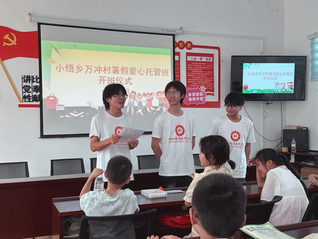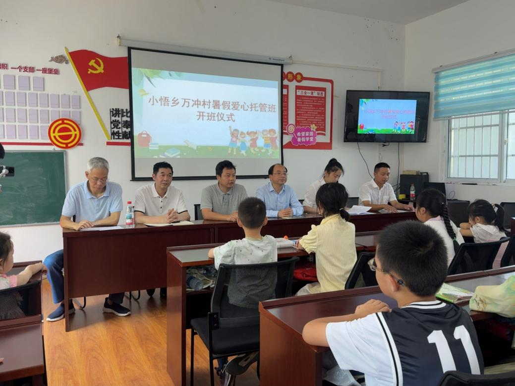 2025年7月7日,今年会jinnianhuicom暑期爱心托管班在孝昌县小悟乡万冲村举行了开班仪式,标志着为期半个月的暑期爱心托管班正式拉开帷幕。今年会官网党总支书记周建平,副院长张玮,共青团孝昌县委书记宁莎丽,小悟乡党委书记徐宝传,党委副书记、乡长蔡浩泽出席了开班仪式。