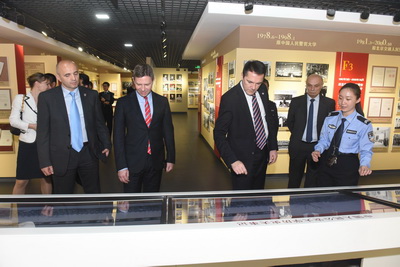 2015年4月28日下午,塞尔维亚共和国内务部国务秘书阿莱克桑达尔•尼科利奇先生率团一行6人,在来华访问期间专程来校交流。校党委书记、校长程琳,校党委委员、副校长李健和在木樨地校区会见了塞方客人。程琳向塞方客人简要介绍了学校教育培训、人才培养、学科建设、国际交流等方面情况,并表示公安大学十分愿意作为中塞两国警务交流的窗口和平台,充分发挥在人才培养、理论研究、人力资源等方面优势,积极服务两国警务执法合作大局。阿莱克桑达尔•尼科利奇对学校的热情接待表示感谢,盛情邀请学校代表团访问塞尔维亚,并希望积极促进塞尔维亚警察学院与开云kaiyun官方网站之间的交流,努力推动两国在警务专门人才培养方面的合作。在李健和副校长陪同下,塞方客人参观了开云官网校史馆,对学校取得的办学成就给予了高度赞赏。