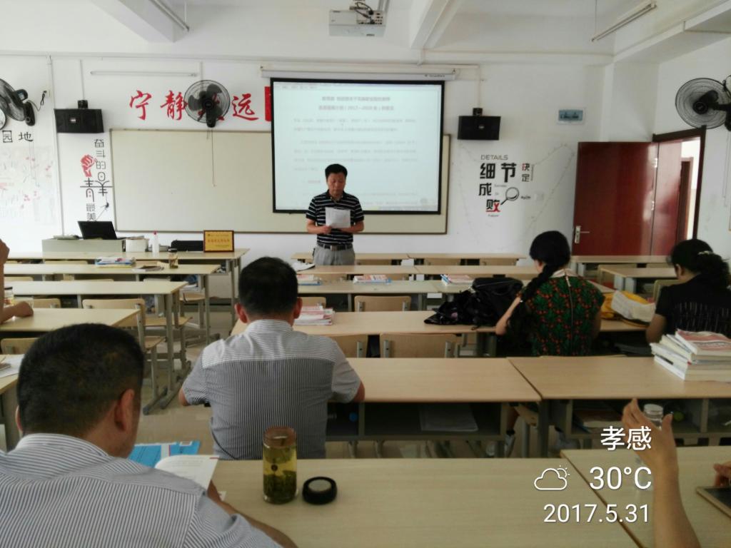 5月31日,根据《湖北职院2017年上半年政治理论学习计划表》安排,今年会官网全体教职工在6号楼(人文楼)307教室集中政治学习,内容:《教育部、财政部关于实施职业院校教师素质提高计划(2017-2020年)的意见》,主持人:何伟,主讲人:高想清