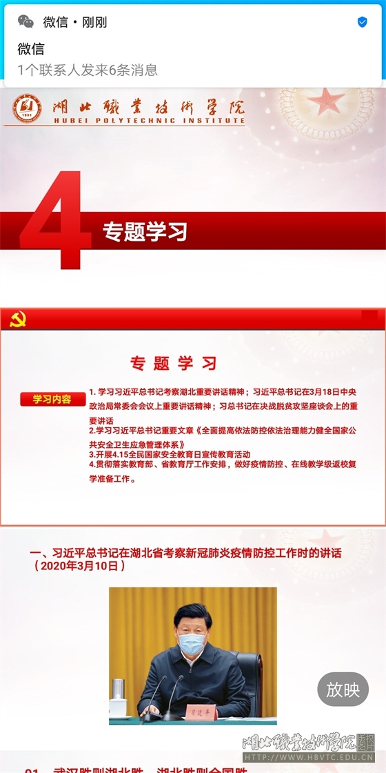 今年会官网党总支书记廖建宏同志在讲话时从三个方面强调,一是全体党员在疫情防控特殊时期,要进一步提高政治站位,增强四个意识,不信谣、不传谣,全面加强各类平台管理;二是要进一步积极发挥各党支部的战斗堡垒作用和党员的先锋模范作用,进一步激发全体教职员把思想和行动统一到习近平总书记指示精神和学校党委的决策部署上来;三是适应工作新常态,强化各项纪律要求,坚持疫情防控和常规工作相结合,两手抓、双促进。希望全体党员同志,继续发扬湖北职院精神,严格落实各项工作职责,认真做好线上教学、专项工作推进、复学准备等工作。