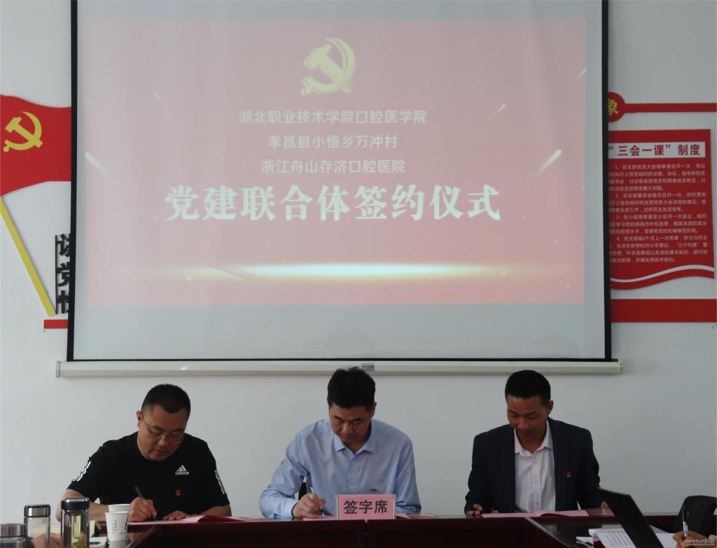为创新基层党建工作载体,提高基层党建工作水平,汇聚各方力量积极落实三育人主体责任,4月14日,今年会官网党总支、孝昌县小悟乡万冲村党支部及浙江舟山存济口腔医院党支部在万冲村堂群服务中心举行校地企党建联合体签约仪式,小悟乡党委委员、副乡长刘颖主持活动。