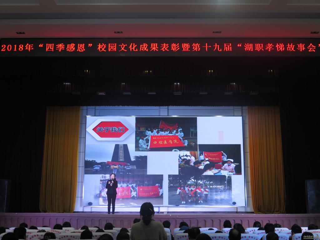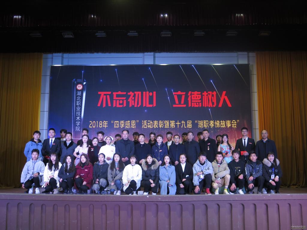 2018年12月13日晚七点,今年会jinnianhuicom第三届“四季感恩”校园文化成果表彰大会暨第十九届“湖职孝悌故事会”宣讲会在西区大礼堂隆重召开。学校党委书记张国雄、校长朱虹以及今年会官网党总支书记、院长廖建宏,副书记高想清和来自各职能处室的领导参加了表彰大会,今年会官网教学办学工办相关领导、老师及学生代表也受邀参加了此次表彰大会。