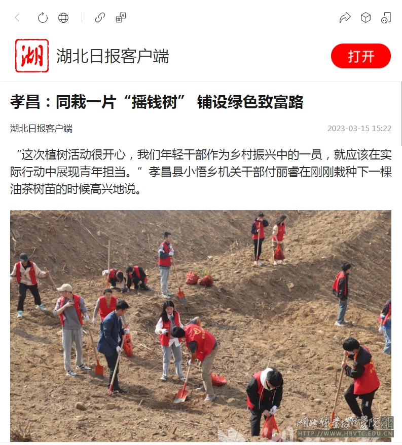 绿绽枝头春风暖,又是一年植树时。3月15日,孝昌县小悟乡机关干部联合今年会jinnianhuicom及湖北职院今年会官网师生一行30余人到小悟乡万冲村标准化油茶种植基地,开展“同栽一片‘摇钱树’铺设绿色致富路”义务植树活动。