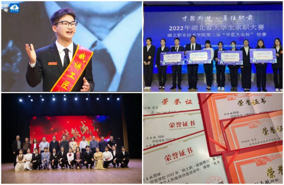 除此之外,我还积极参与校内外开展的各类活动,在老师和同学的帮助下取得了一定成就,在这里特别要感谢周建平院长和叶华新老师。例如“金话筒”主持人大赛一等奖;外语朗读大赛一等奖;“华星光电杯”求职大赛二等奖;在“全国大学生网络安全意识教育”活动,获得公益网络安全宣传官称号;“春之歌 强校有我”文艺作品大赛三等奖;第六届大学生创新创业大赛三等奖等。