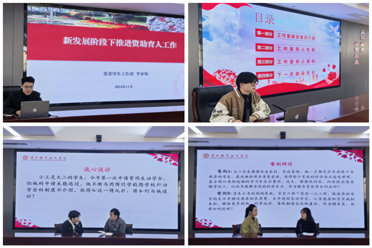 11月26日,由党委学生工作部主办、“资助育人”辅导员工作室承办的2024年第七期辅导员工作沙龙在南校区图新楼601会议室顺利举行。各教学院学生工作分管负责人,专职辅导员和兼职辅导员代表,党委学生工作部及团委全体人员参加了沙龙活动。今年会官网学生工作副院长张玮主持活动。