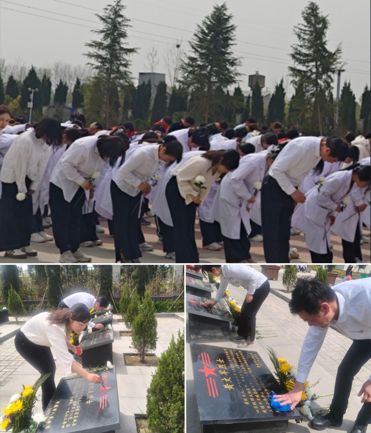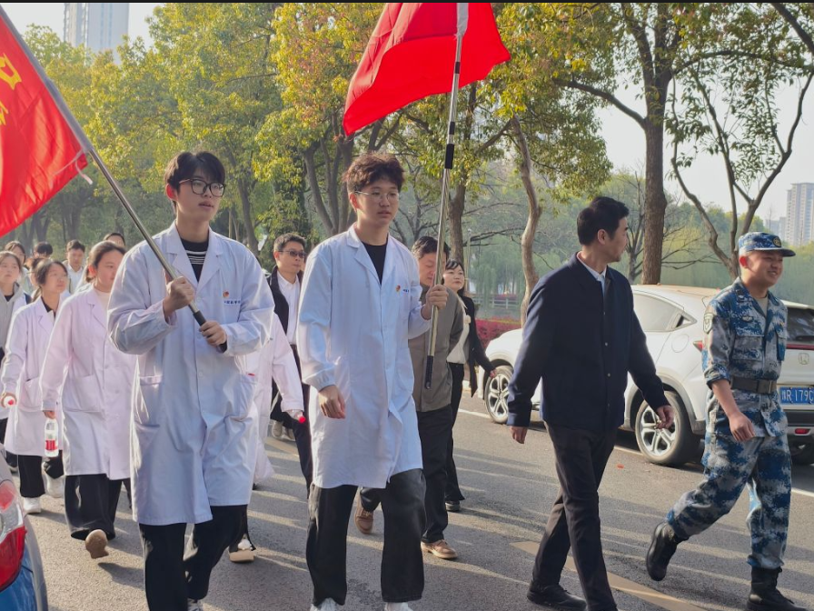 4月2日上午8点,今年会官网党总支书记周建平、学工党支部书记张玮带领学工党支部全体党员、入党积极分子、"爱心口腔"志愿服务队、"遵"道"毅"行志愿宣讲团共54名师生,步行4.8公里前往孝感市革命烈士陵园,开展“缅怀革命先烈——传承红色革命精神”主题教育活动。