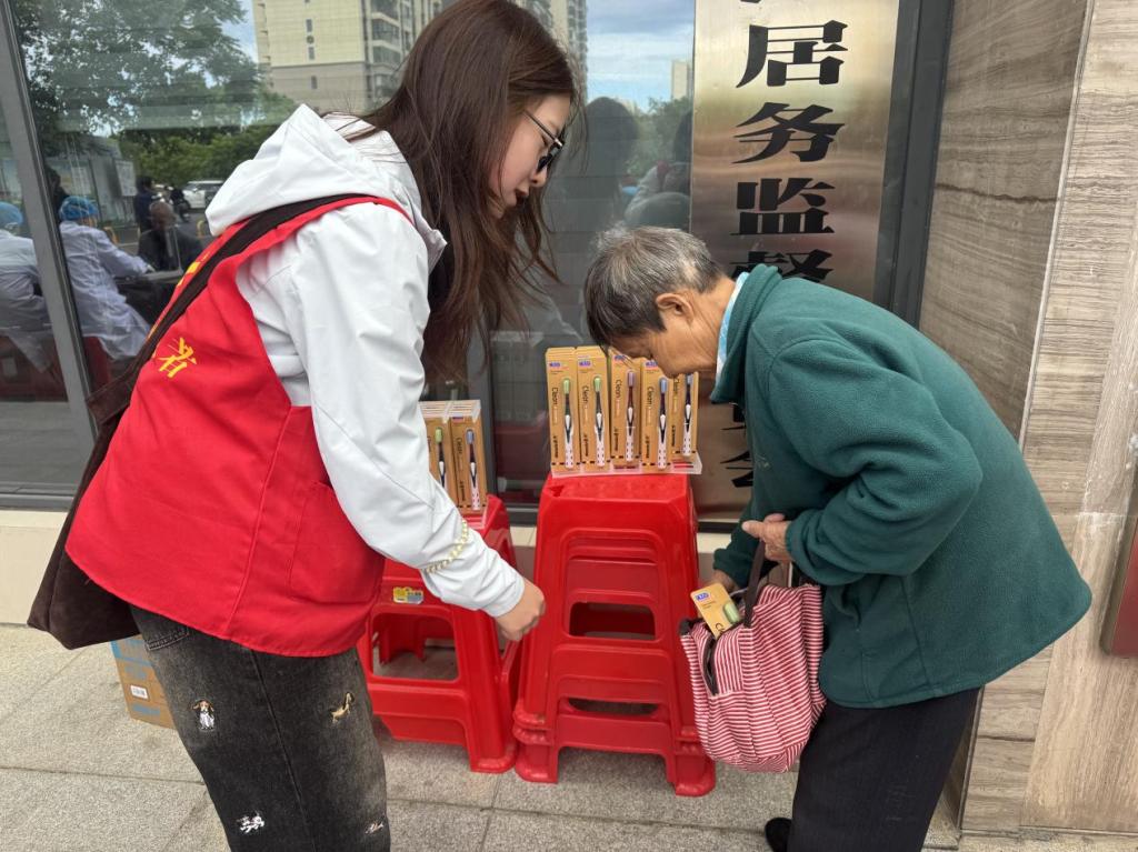 考虑到居民后续口腔护理需求,活动还为完成检查的居民准备了牙膏、牙刷等护理用品。志愿者在教师指导下,逐一为居民发放物资,并结合居民的口腔检查结果,补充讲解日常刷牙方法、口腔清洁频率等实用保健知识,帮助居民建立“预防优于治疗”的健康理念,切实提升自我口腔护理能力。