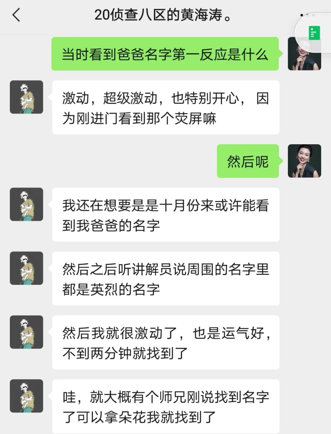 当听到可以找到自己父亲的名字时,我特别激动,也特别紧张,在那一面墙上密密麻麻地铺满了英烈们的姓名。我搜寻、搜寻......一个个陌生的名字划过,耳边响起师兄的话语:找到自己父亲的名字,可以给父亲献花。