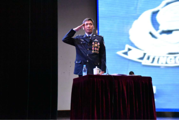 本次讲座以“不忘初心,做最好的自己”为主题,尹警官从三个方面向同学们分享了自己的成长历程。一是“对党忠诚”。作为党员,面对近在咫尺的病毒与危险,迎着威胁生命的疫情与压力,尹警官勇敢向前,无畏艰难,他主动请缨,成为疫情中耀眼的逆行者,愈是艰难,愈是向前,为打赢新冠疫情阻击战做出了有力贡献,用实际行动生动阐释了“共产党员”的责任与担当。二是“服务人民”。他向同学们生动地介绍了内涵丰富的基层工作,从枫桥经验的实践到日常出勤注意事项,从宏观治安把控到细微的执勤用语,无一不是用岁月积攒出来的经验与感悟。尹警官强调,日常工作要紧密围绕群众,走到群众眼里,走到群众家里,走到群众田地里,走到群众心里,用心联心,将心比心,因势利导,妥善化解群众矛盾,将“全心全意为人民服务”的宗旨化为切实的行动,不断为群众排忧解难。三是“勇于担当”。尹警官指出,直面问题需要勇气,解决问题需要能力,既然头顶警徽,就要担负得起使命;既然身着警服,就要扛得起人民的信任与托付。宣讲中,尹警官深情回忆了在校读书时的生活与感受,表达了对母校四年培养的衷心感谢和对在座同学们的殷切期望,他勉励广大同学,要珍惜韶华,勤奋学习,努力成长为值得人民信赖的共和国警官。尹警官饱含感情的语言、生动活泼的案例,为新生同学们上了一节难忘的“从警第一课”,现场不断响起热烈的掌声,掌声中充满了同学们对这位“大师兄”的认可与崇拜。