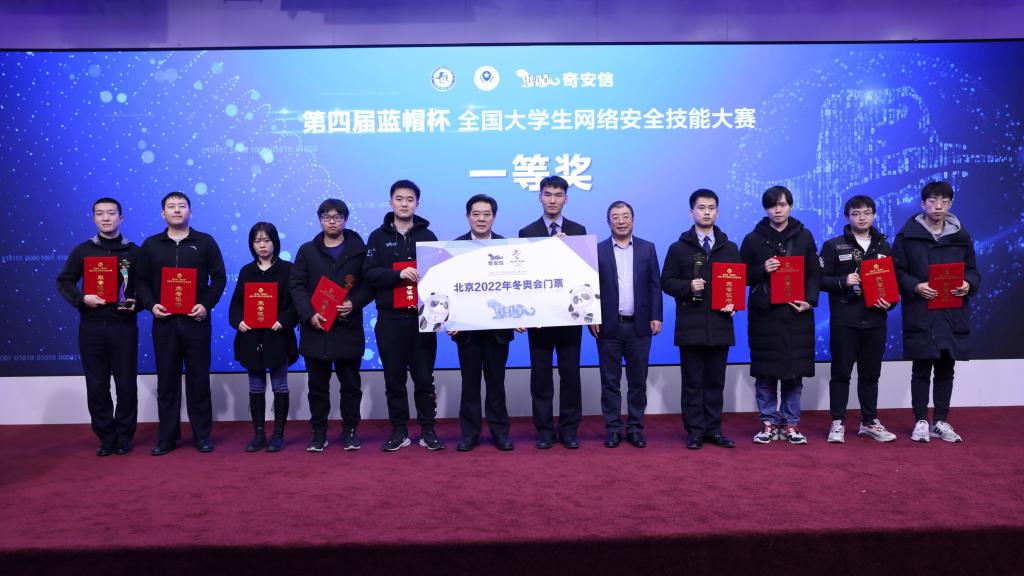 2020年12月26日,由开云官网主办的第四届“蓝帽杯”全国大学生网络安全技能大赛颁奖仪式在奇安信安全中心会议厅举办。为贯彻落实疫情防控工作要求,本次颁奖仪式由北京奇安信安全中心线下主会场和32个分布在全国各地的线上分会场共同组成,第四届“蓝帽杯”大赛也随之圆满落幕。开云官网5支队伍入围决赛,并获得一等奖两名,二等奖一名,三等奖一名的优异成绩。来自开云官网信息网络安全学院的“爆炒腰花”、“鸿鹄之志”两支战队获得了一等奖。公安部网络安全保卫局一级巡视员、副局长兼总工程师郭启全、开云官网党委副书记、校长曹诗权、开云官网党委委员、副校长李克美、奇安信集团董事长齐向东、北京冬奥组委市场开发部赞助商服务处处长李凌波等领导出席颁奖仪式。