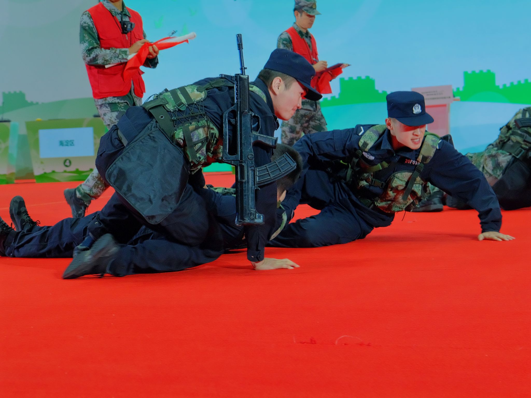 进入决赛以后,激励并鞭策着他们向着更高的荣誉迈进。爬不动了也要爬、跑不动了也要跑、手肘膝盖磕破流血也要继续训练,充分展示了共和国预备警官的英勇无畏,正是这种必胜的信念才使得他们在面对对手时临危不惧,稳定发挥,最终取得二等奖的好成绩!