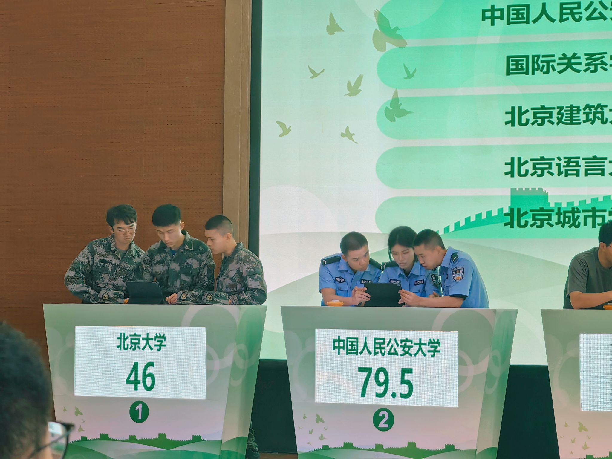 “刚开学的第二天我们就接到了比赛的通知,但距离初赛开始只有一周的时间,时间紧任务重,我们快速筹备并组织人员展开训练。技能竞赛的同学每天利用下午的时间前往北京市人防综合训练基地进行实地训练,晚上回校还会进行体能的强化训练;知识竞赛的同学也利用课余时间去背记海量题库,常常背记到后半夜。”参赛队负责人周容基说道。