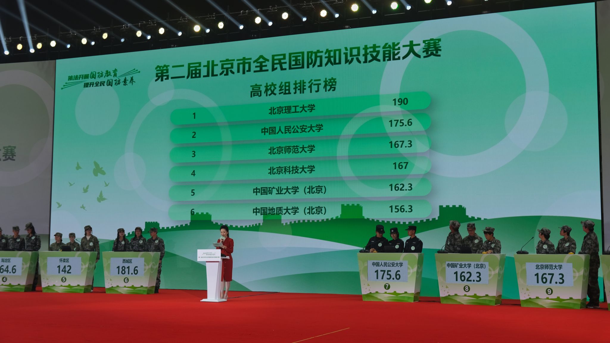 近日,由中共北京市委宣传部、北京市国防动员办公室、中共北京市委教育工委、北京市教育委员会、北京市退役军人事务局和北京卫戍区政治工作部联合主办的第二届北京市全民国防知识技能大赛(决赛)在北京航空航天大学举行。本次大赛区分社会组和高校组两个组别,来自全市16区和42所在京高校的代表队进行知识竞赛和技能竞赛的激烈比拼,58支队伍中的12支入围决赛。
