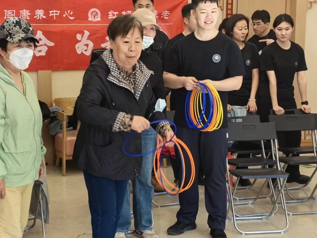 体操保健,研院同行。研院学子结合八段锦、五禽戏设计出了一套符合老年人实际身体情况的养生体操,在共做体操中传递关爱。