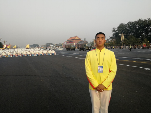 答:我觉得这些活动中最令我难忘的应该是国庆70周年专项任务中在国庆当日我擎着红旗走过天安门,向抗战老兵表达敬意。经过70多日的艰苦训练,在10月1日凌晨我们进入长安街在指定位置备场。时间慢慢流逝,全场静默,全体起立,鸣礼炮,升国旗奏国歌,主席讲话,主席检阅部队,徒步方阵迈着整齐而又坚定的步伐从我们面前经过,武器装备方阵在我们面前缓缓驶过,我们走到指定位置集结,踏着歌唱祖国和红旗颂,迈着坚定的步伐,用昂扬的姿态擎着红旗走过天安门,向抗战老兵们表达了最崇高的敬意。这一段宝贵的经历会让我铭记一生。