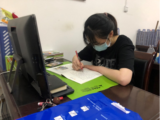 图为研支团成员陈秋雨进行备课