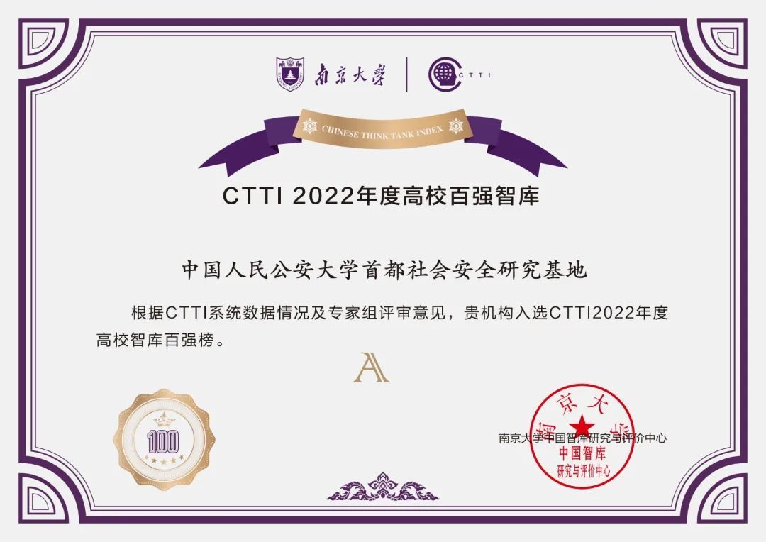 经过综合评选,开云kaiyun官方网站首都社会安全研究基地从600多家高校智库中脱颖而出,入围“中国智库索引(CTTI)2022高校智库百强榜”,获评A等级智库。
