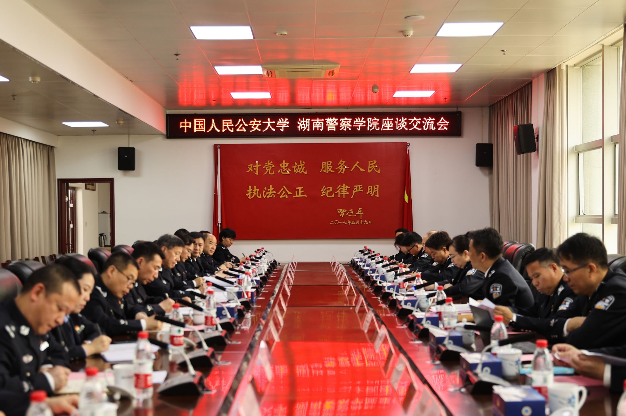 当日上午,调研组还先后赴长沙市人民警察学校和湖南警察学院进行了调研。大家一致认为,今年是全面贯彻落实党的二十大精神的关键之年,是发展新质生产力、加快形成和提升新质公安战斗力的开局之年。公安院校大有可为,也必将大有作为。面对新时代、新使命、新任务,各兄弟院校应当共同凝聚智慧,形成发展合力。公安大学作为全国公安院校和公安高等教育高质量发展的“排头兵”,支持湖南公安教育高质量发展责无旁贷。下一步,学校将积极与全国兄弟公安院校在学科建设、科研攻关、师资培养、学生交流方面深入合作,相互支持、相互助力,以高水平校际合作助力公安高等教育高质量发展,共同打造好“三个高地”,努力做好培养党和人民忠诚卫士的“主力军”、推进公安工作现代化的“桥头堡”。