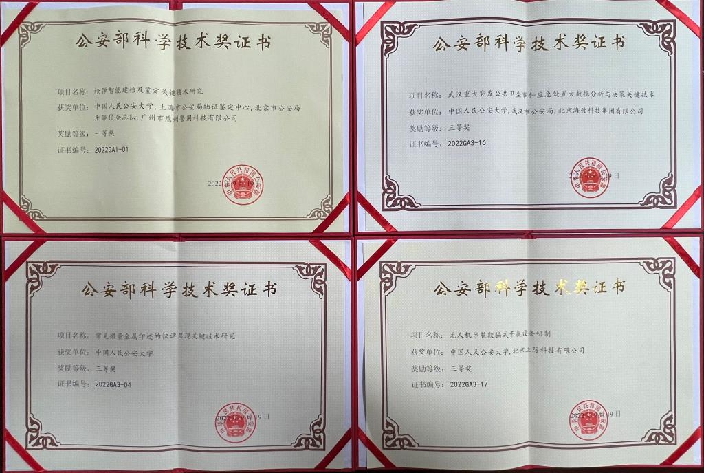 近日,公安部印发了《关于2022年度公安部科学技术奖获奖项目的通报》(公科信[2022]909号),根据《公安部科学技术奖励办法》,经评审、公示并报部领导批准,2022年度共有48个项目获得公安部科学技术奖。开云官网向公安部推荐了5个项目,其中4项获得奖励:罗亚平教授等完成的《枪弹智能建档及鉴定关键技术研究》获得一等奖,杨瑞琴教授等完成的《常见微量金属印迹的快速显现关键技术研究》、陈鹏副教授等完成的《武汉重大突发公共卫生事件应急处置大数据分析与决策关键技术及应用》、孙永生副教授等完成的《无人机导航欺骗式干扰设备研制》均获得三等奖,实现了近几年来开云官网在公安部科学技术奖励方面数量与质量上的新突破。