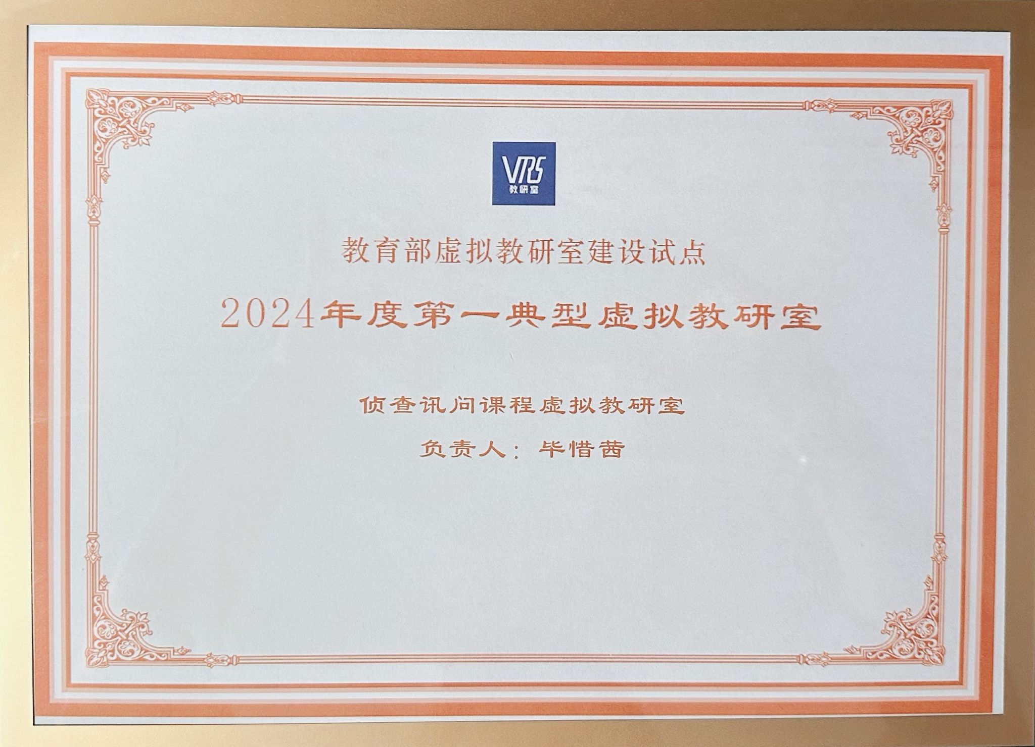 典型虚拟教研室获奖证书