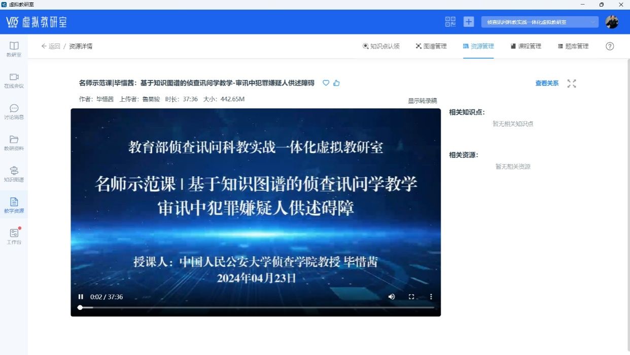 2025年是落实教育部教育数字化战略和公安部全面升级智慧公安建设部署的关键之年,“侦查讯问课程虚拟教研室”将在推动人工智能赋能教学上集中发力,推进建设数字助教、数字教师,为教师、学生备课、自学、咨询提供全流程服务。研发AI虚拟仿真教学工具,着力解决学生实训模拟中的真实情境的问题。进一步加强知识图谱建设,继续进行基于知识图谱的侦查讯问教学实践,有力推进“教学研练战”一体化人才培养模式改革创新。